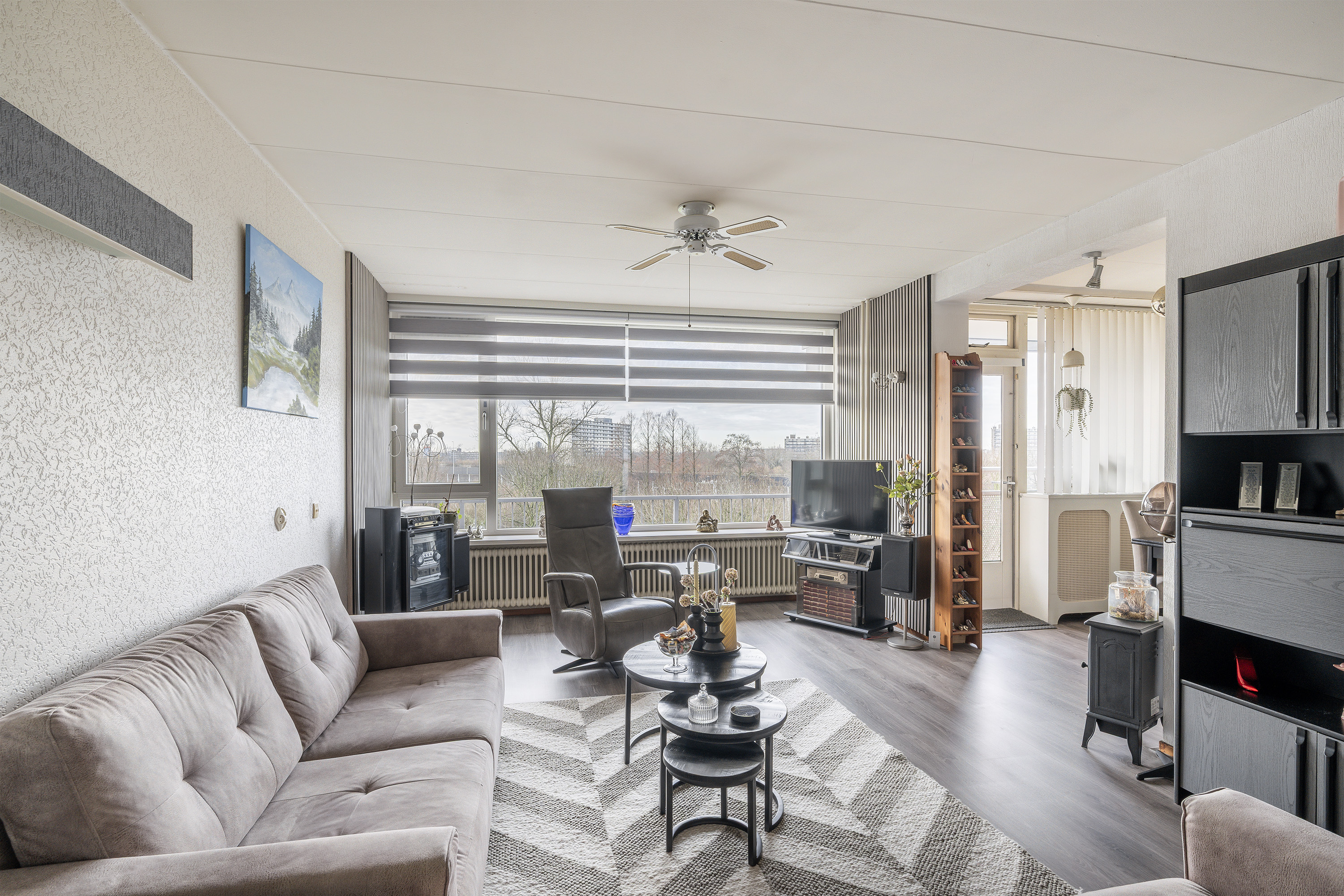 Spacious 5-room apartment located on the 7th floor. This generously sized apartment features a neat, simple kitchen and sanitary facilities. The view from the 7th floor is exceptionally wide and open! The property is situated in a well-maintained apartment complex (with an active homeowners’ association) equipped with multiple elevators. Adjacent to the complex is a large green area, providing a sheltered setting and a pleasant view. The location in Schiedam-Groenoord is very central in relation to public transport, shops, and various main roads.