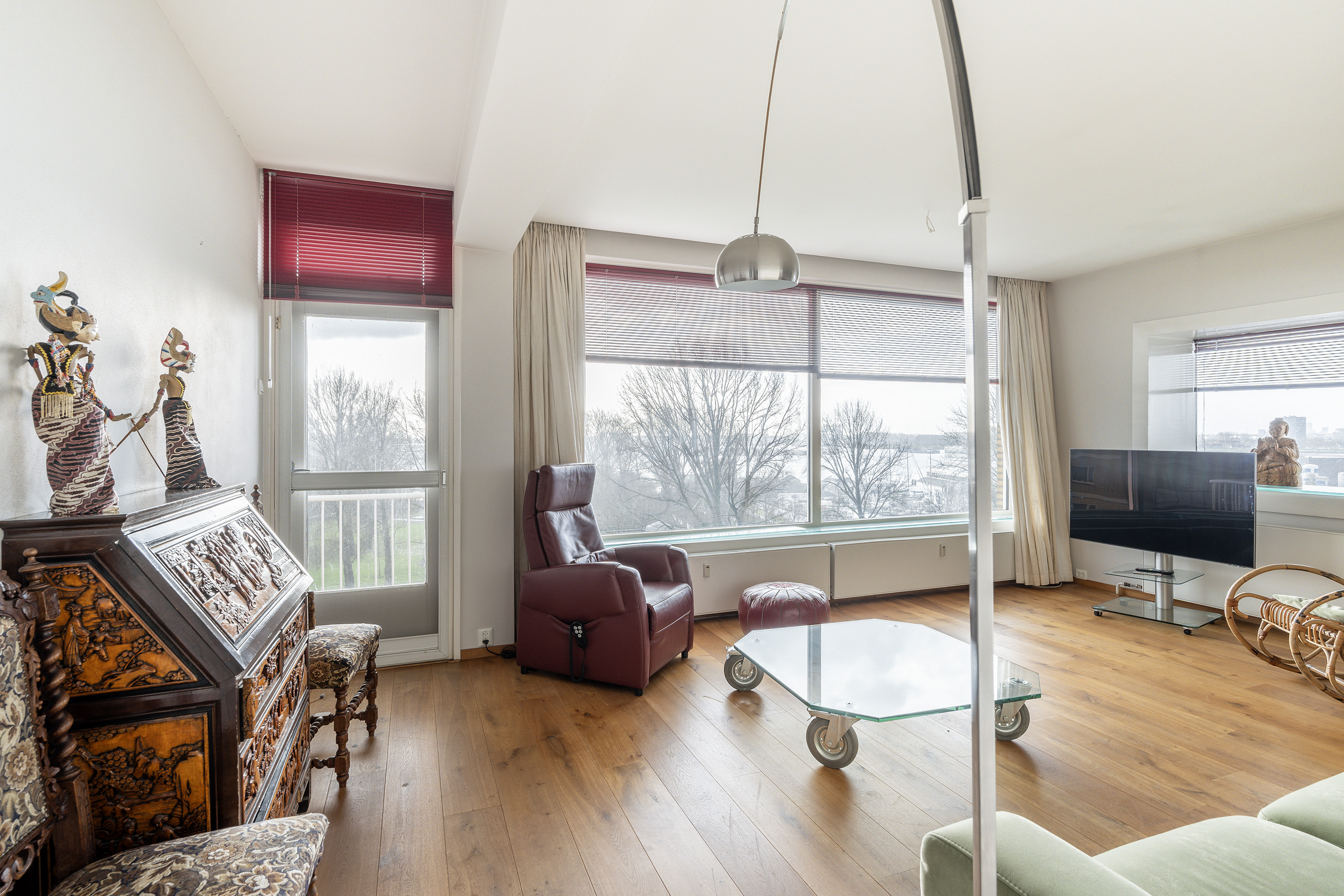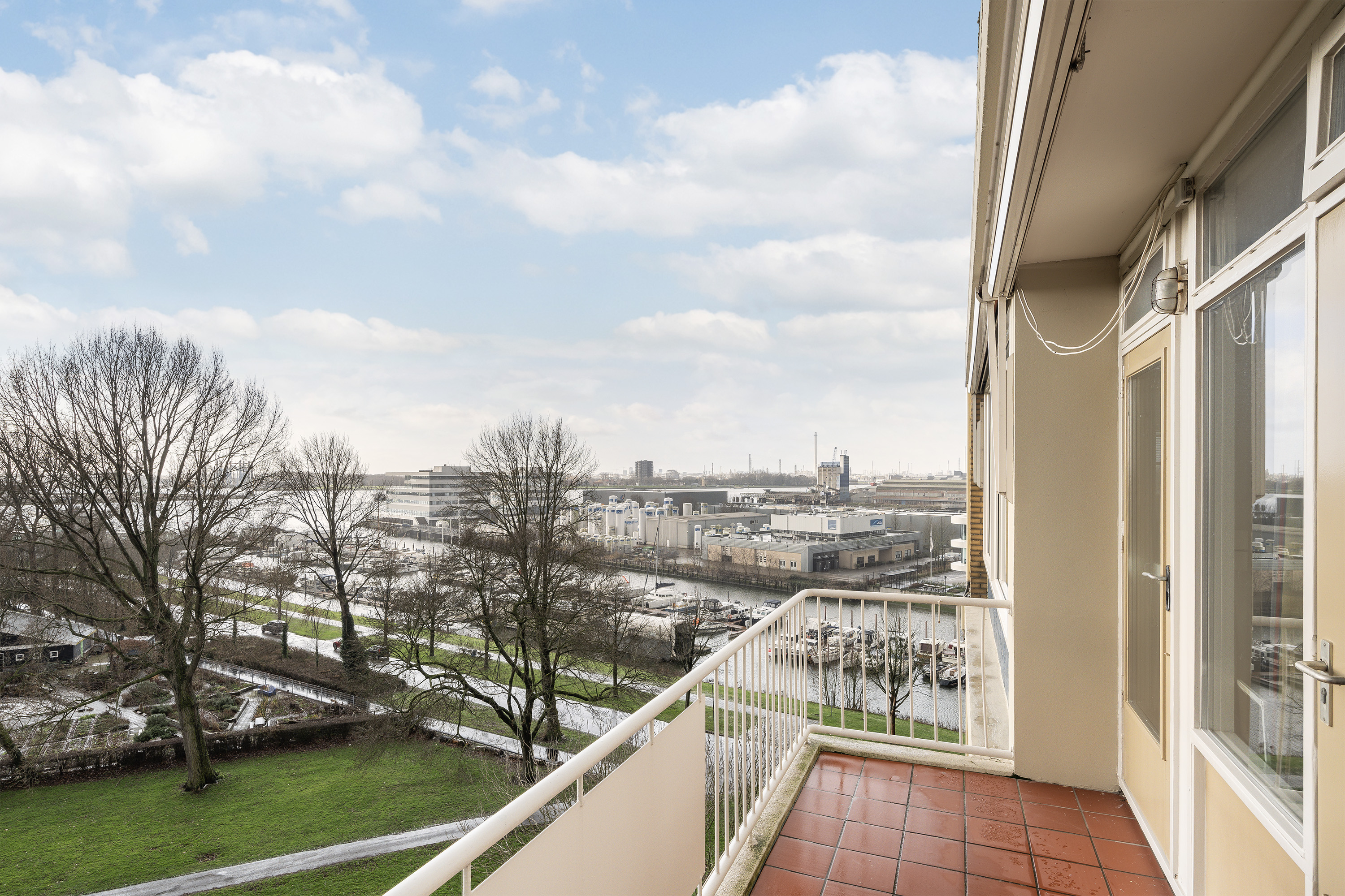 Ervaar de ideale ligging op de 7e etage (top hoek appartement) aan de Maasboulevard te Schiedam. Er is altijd wat te zien! U heeft een vrij uitzicht over het haventje, het park en de Nieuwe Maas waar u oceaanstomers maar ook binnenvaartschepen en cruiseliners ziet passeren. Elke paar minuten een ander uitzicht.