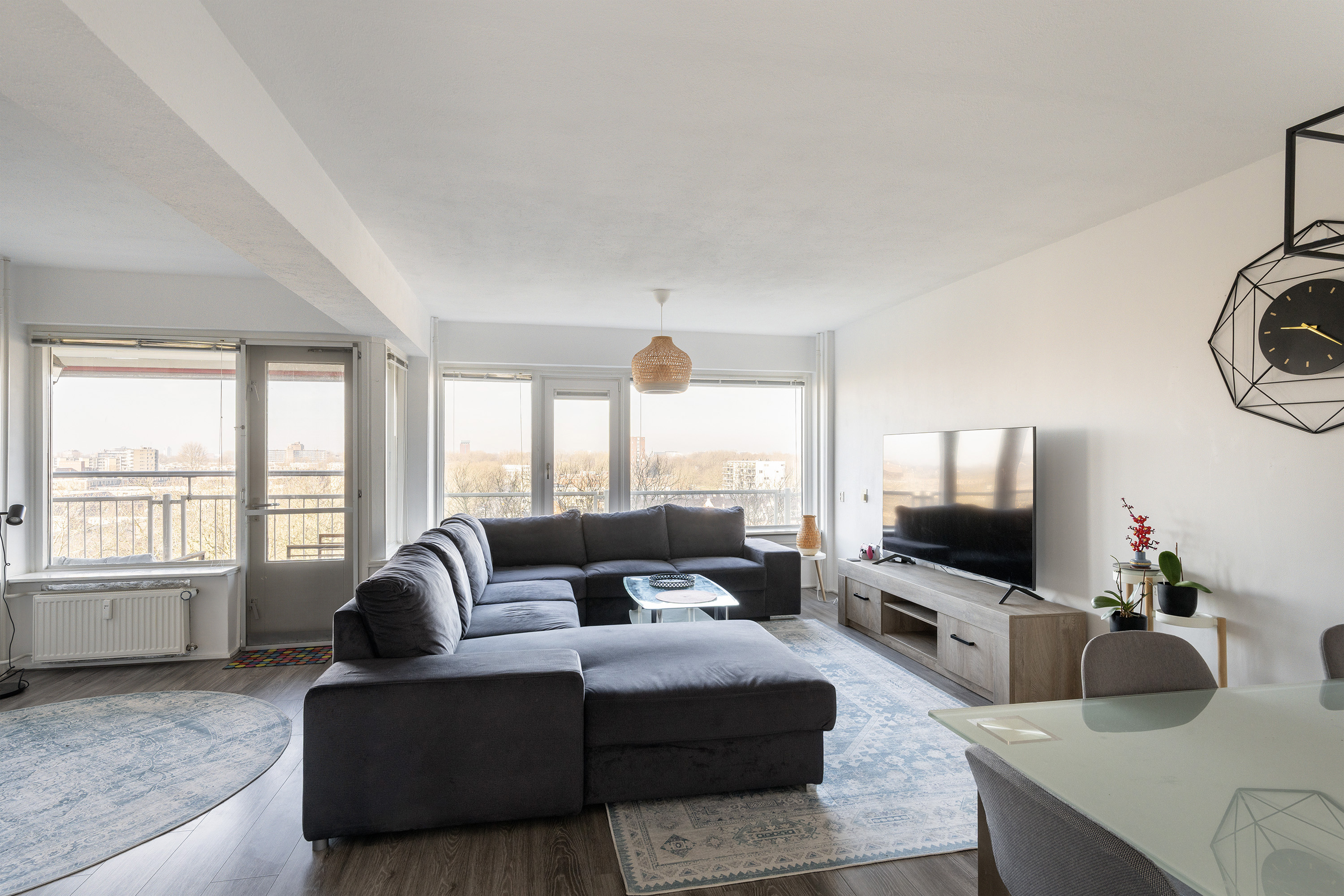 An atmospheric, spacious 3 (formerly 4) room apartment (8th floor) in a child-friendly neighborhood with a sunny location, plenty of privacy, and a beautiful view. The living room is wonderfully spacious (approx. 33 m²), features beautiful natural light, and offers a fantastic panoramic view over old Schiedam, including the many windmills. The apartment complex is equipped with elevators and is maintained by an active Owners' Association. The location is ideal, close to arterial roads and all forms of public transport (to Rotterdam city center - Delft 10 min.), with metropolitan amenities just a stone's throw away. In the immediate vicinity, you will find daily amenities such as a supermarket, restaurant, GP practice, etc. Beatrix Park and nature recreation are your backyard. The city center is also easily and quickly accessible. Schiedam as a place to live: