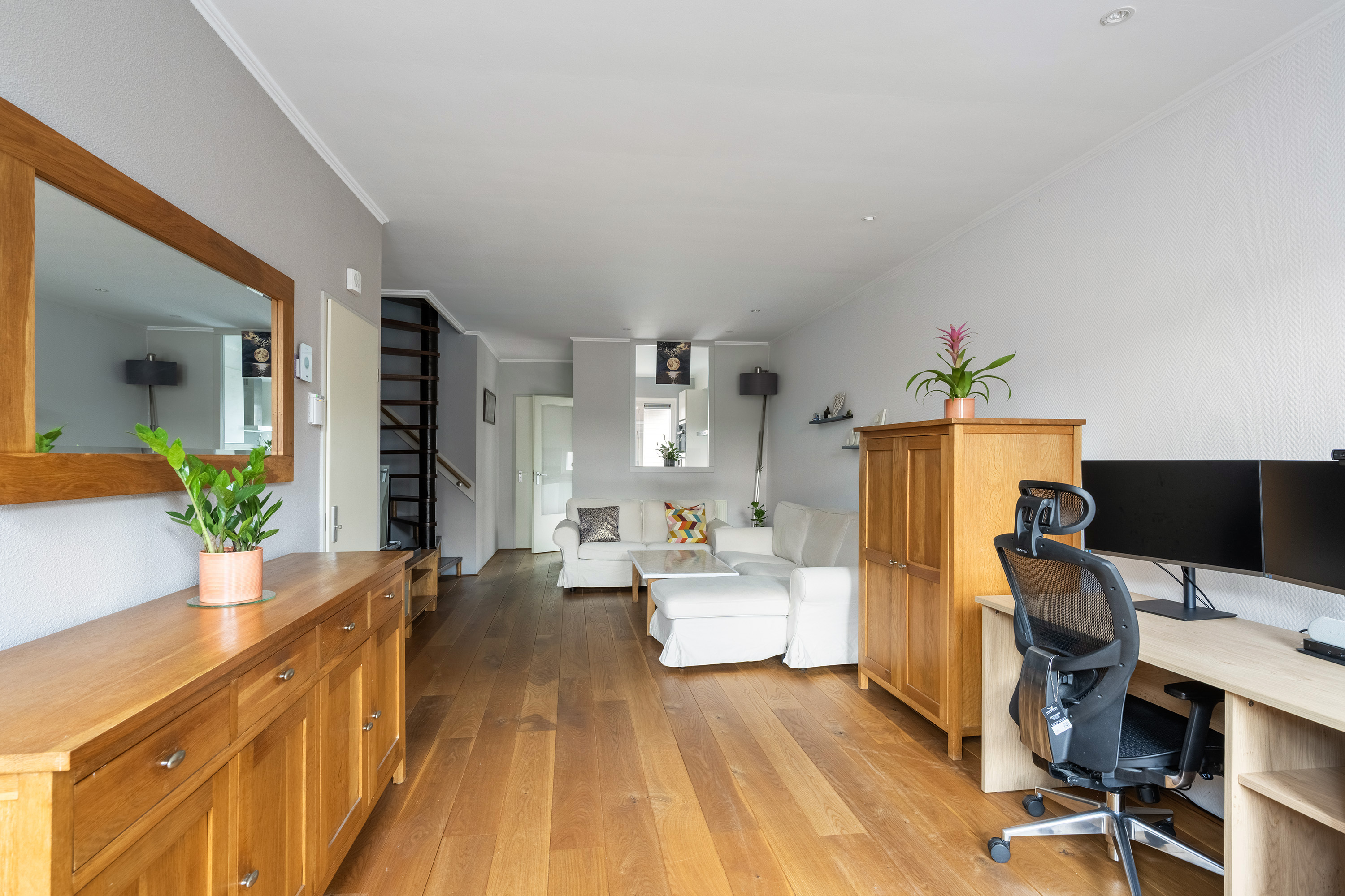 Entree, meterkast met slimme meter, sfeervolle woonkamer van ca. 36m2 met eiken vloerdelen en een mooie lichtinval. Dichte moderne luxe keuken (2018) van ca. 6,3m2 aan de achterzijde met een leuke doorkijk naar de woonkamer middels een raam. De keuken is voorzien van een vaatwasser, gaskookplaat, combi oven (2021), afzuigkap, koelkast en kastruimten. Toilet. Toegang naar de tuin.