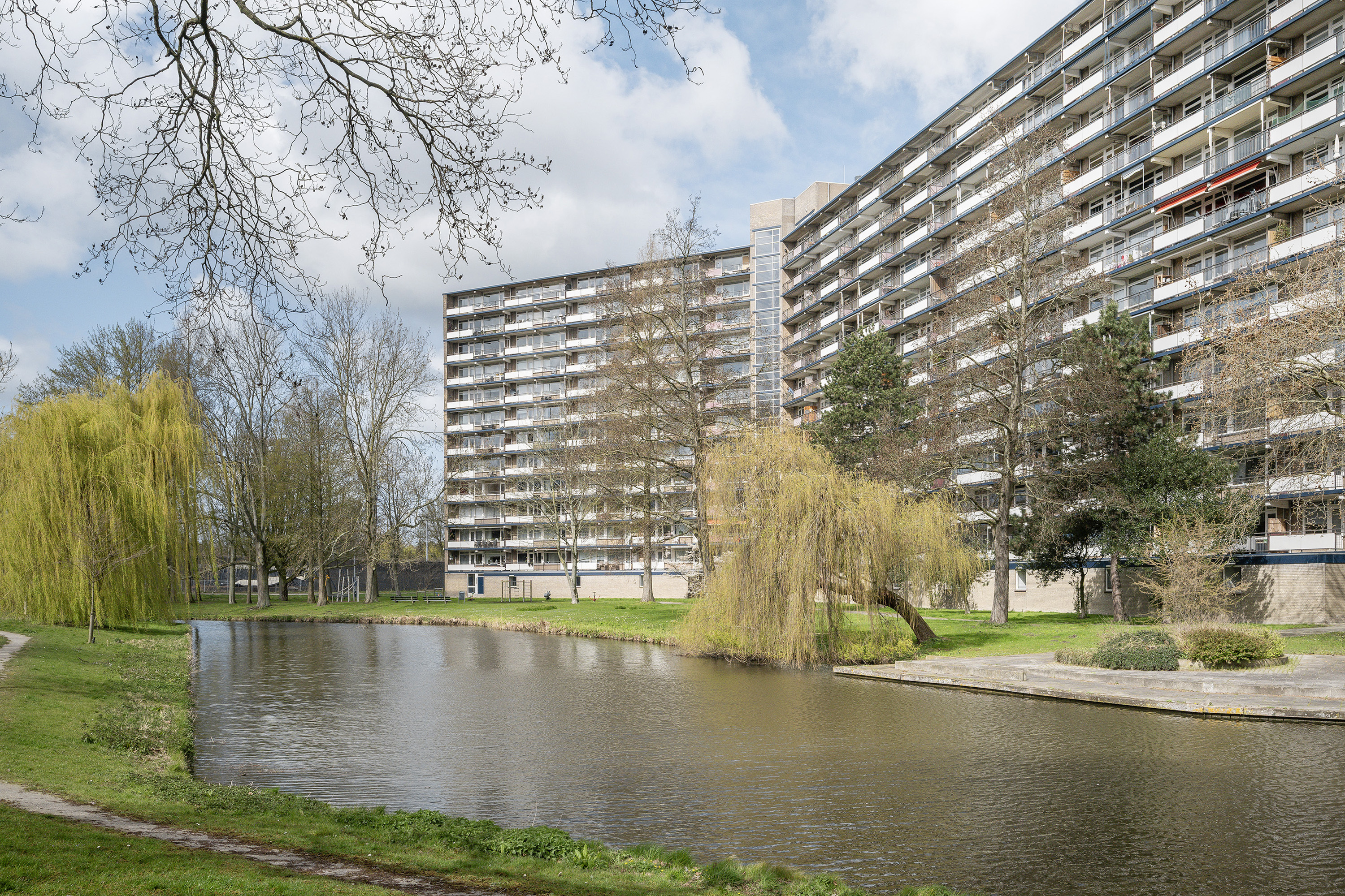 The apartment complex has multiple elevators and is maintained by an active homeowners’ association, located in the Groenoord district in Schiedam-Noord.